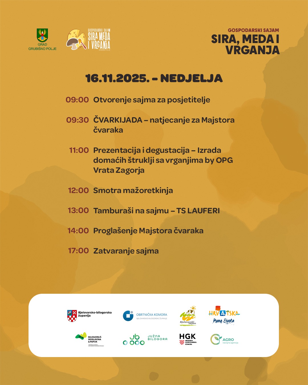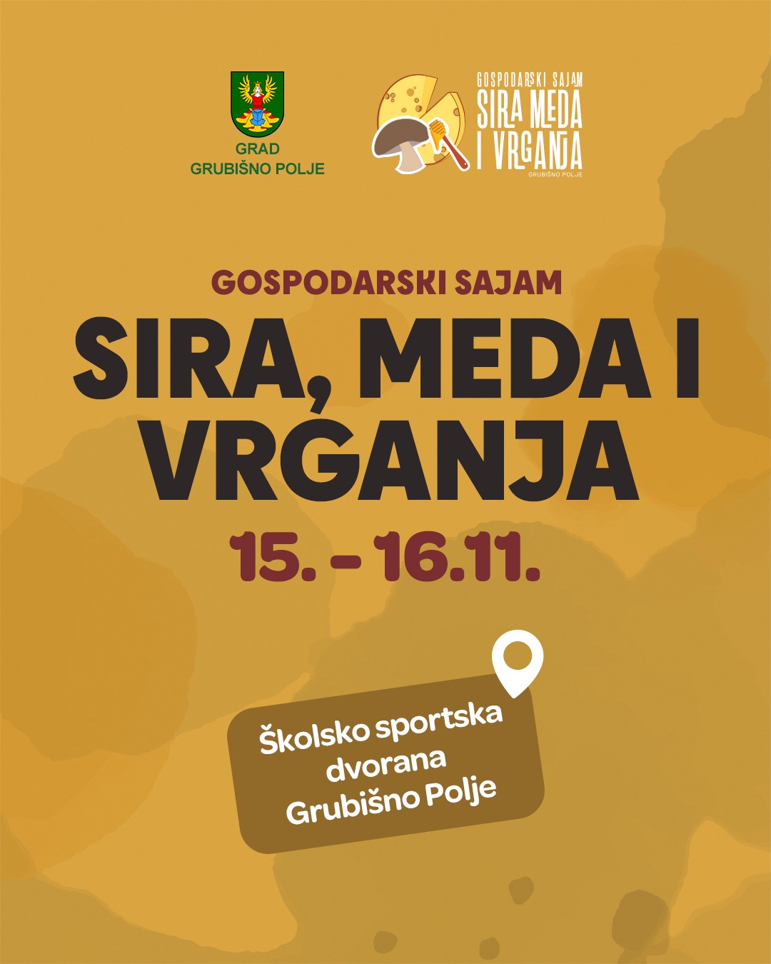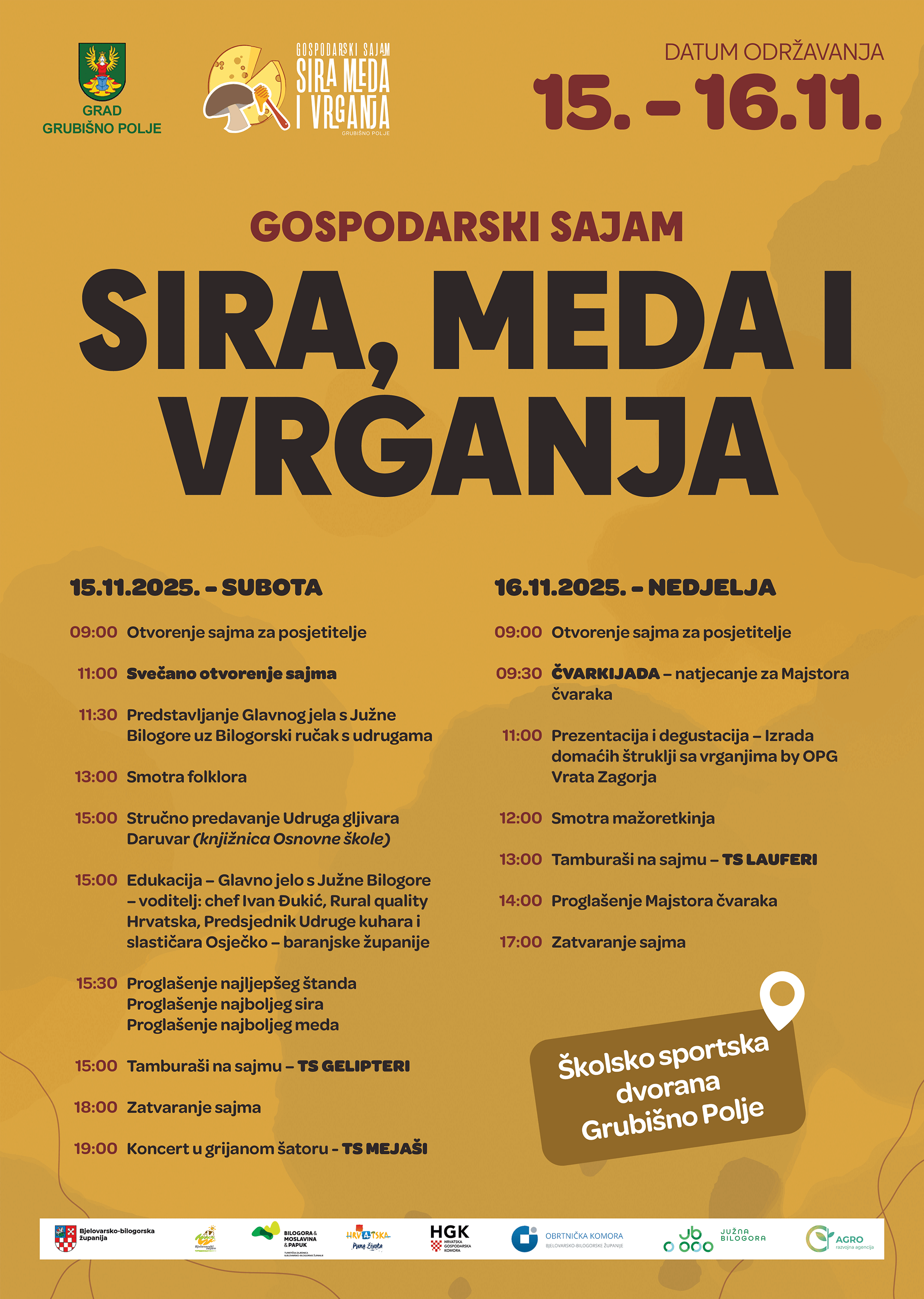 Pozivamo vas na tradicionalni Gospodarski sajam sira, meda i vrganja, koji će se održati 15. i 16. studenoga 2025. godine!